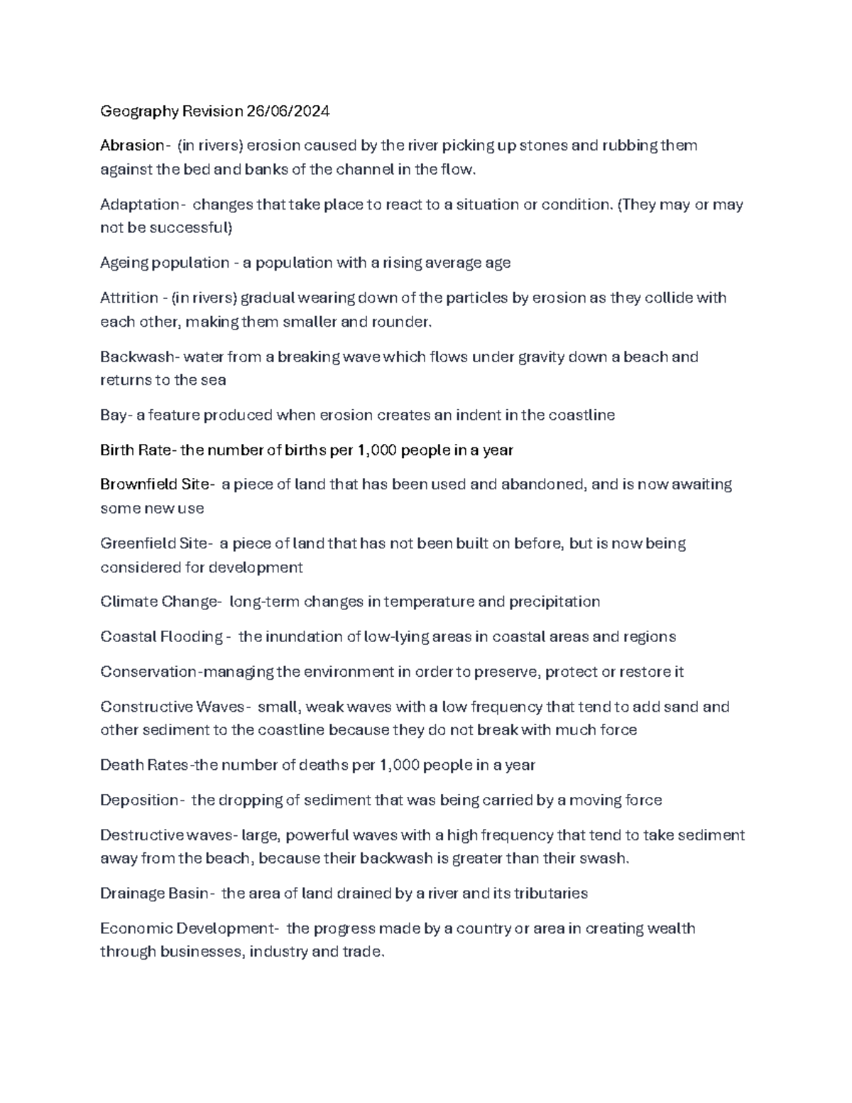 Geography - Revision - Cambourne Village College