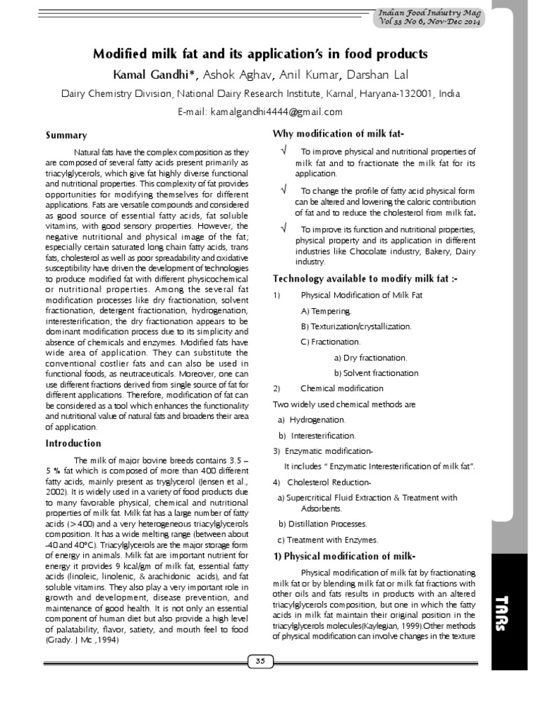 (PDF) Modified Milk Fat and Its Applications in Food Products