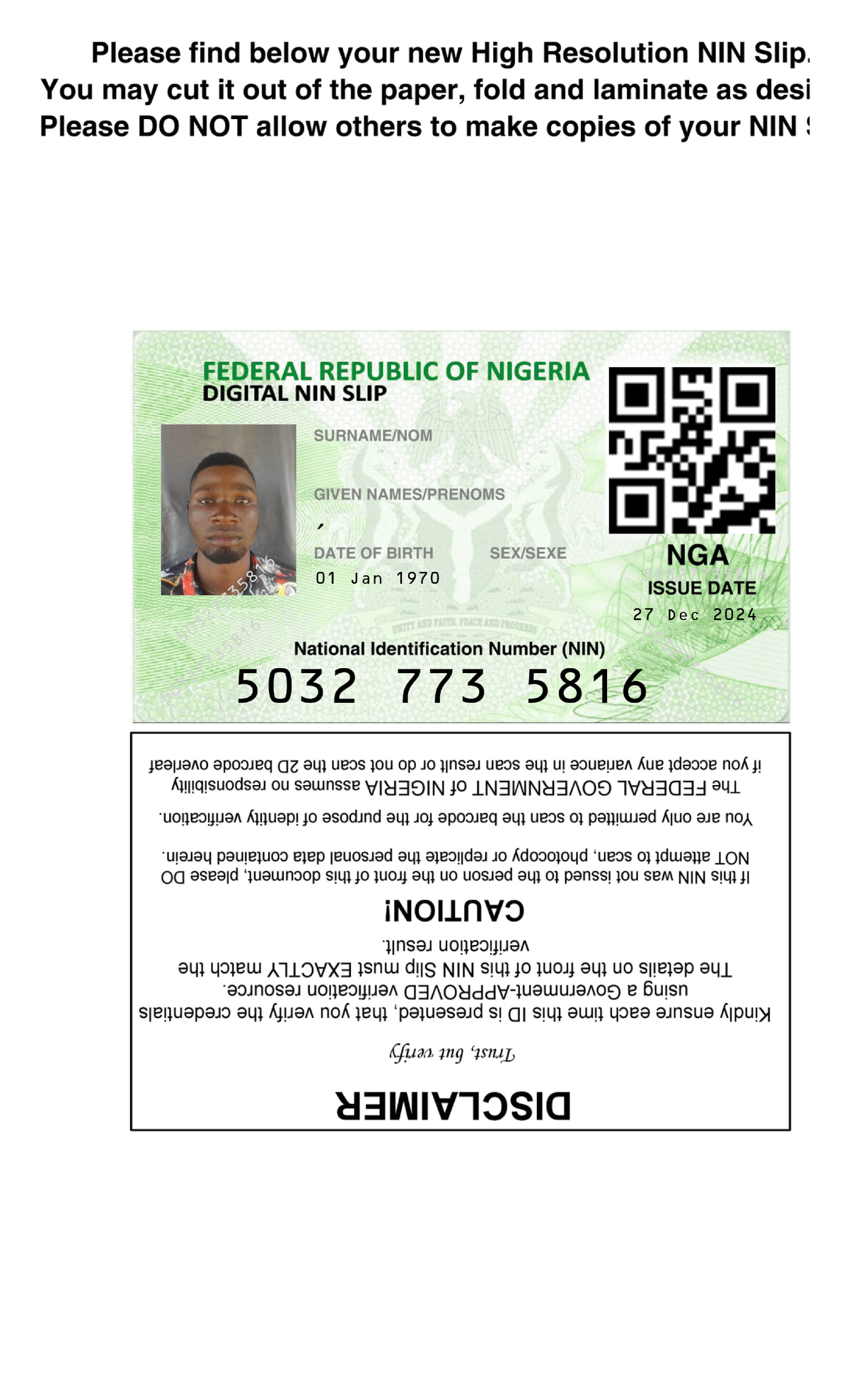 Buy NIN MODIFICATION AND NEW NIN IDEA AND ACCESS by Abdulmalik Muhammad ...