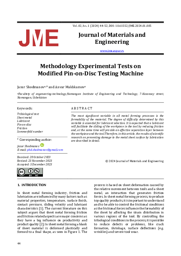 (PDF) Methodology Experimental Tests on Modified Pin-on-Disc Testing ...
