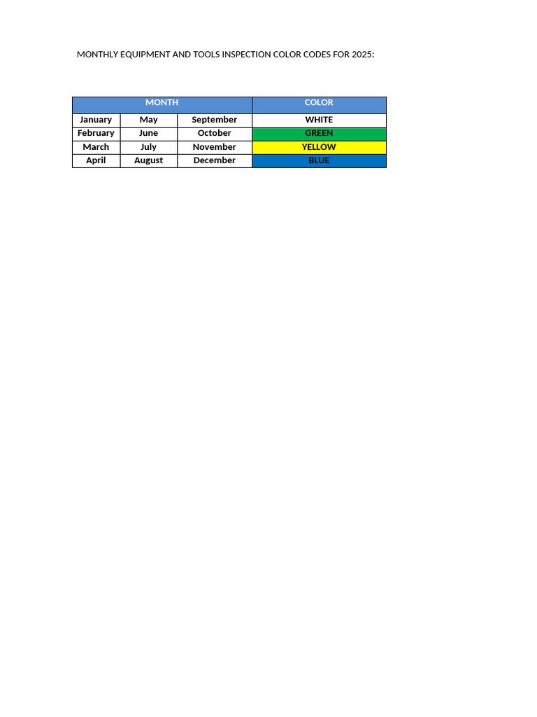Color Codes For Monthly Equipment and Tools Inspection - 2025 | PDF