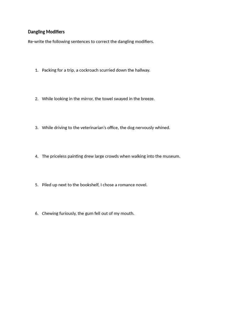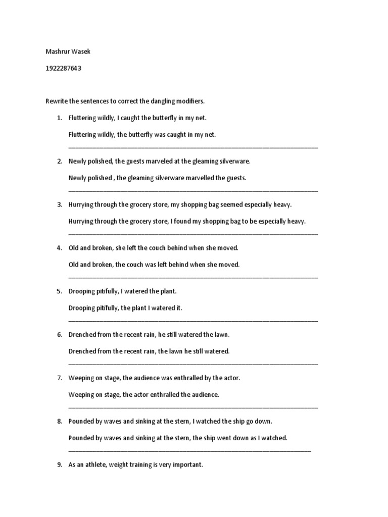 Dangling Modifiers Worksheet