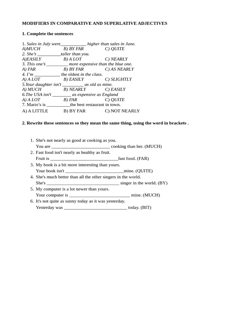 Modifiers Worksheet With Answers Pdf