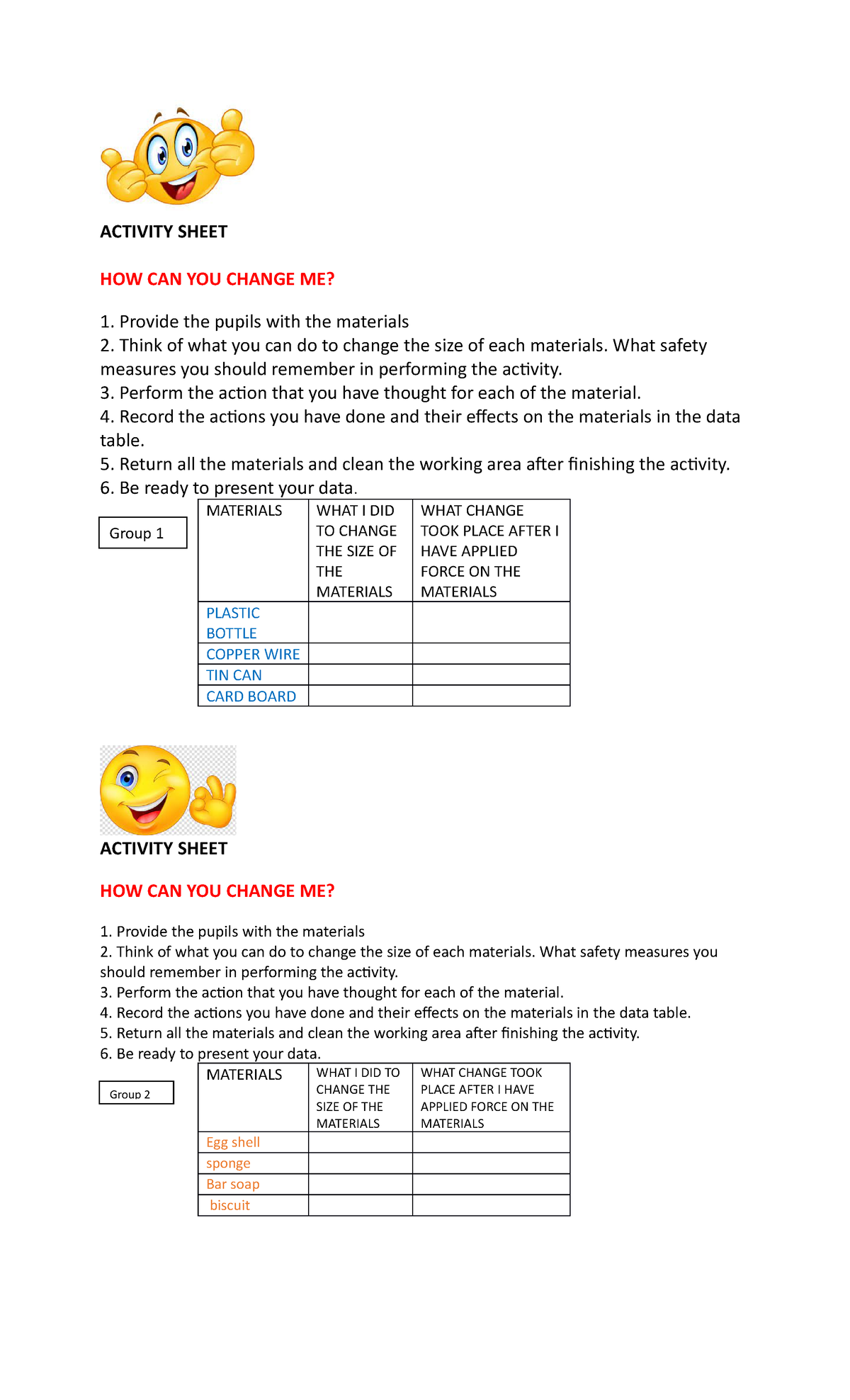 Activity Sheet 1 - 2022 - ACTIVITY SHEET HOW CAN YOU CHANGE ME? 1 ...