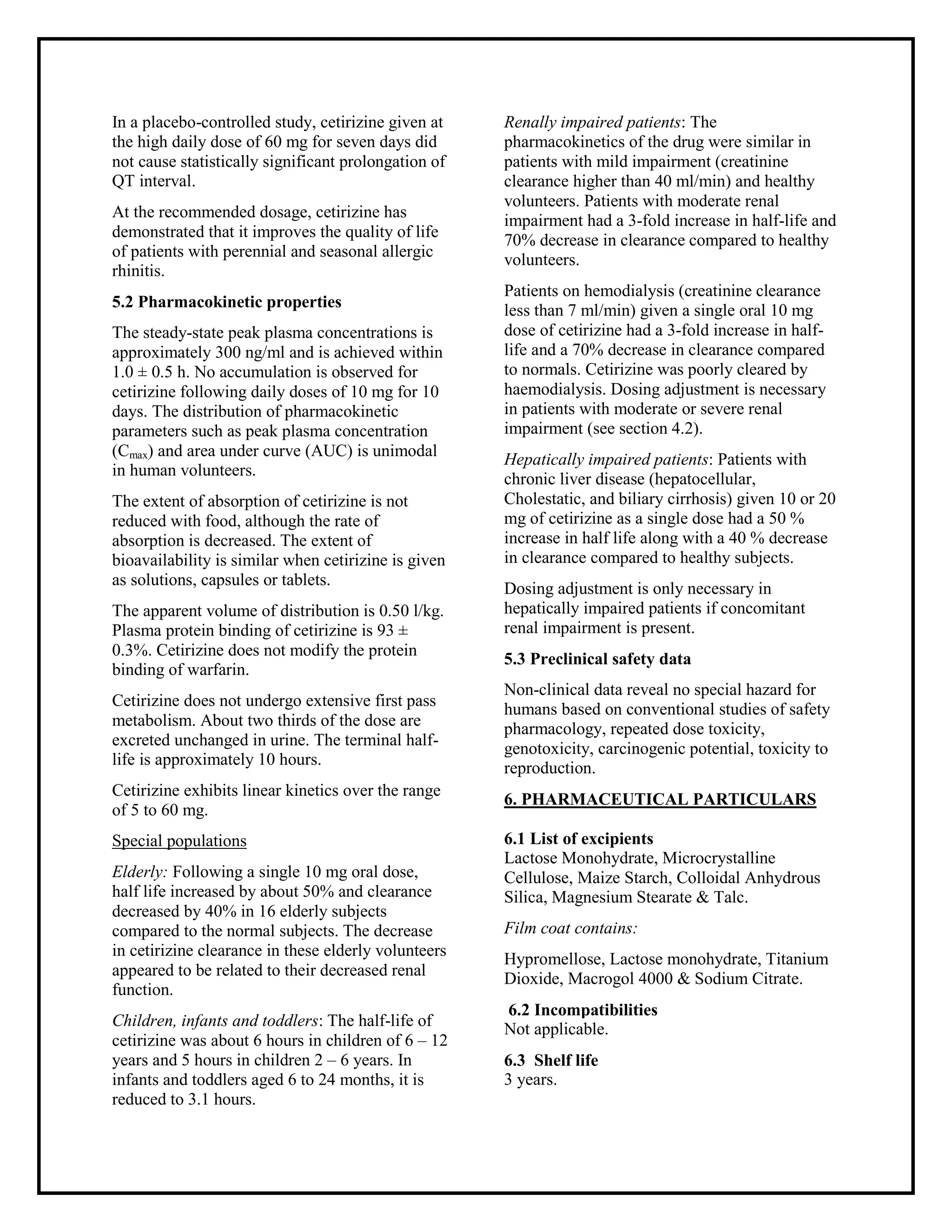 Cetirizine hydrochloride 10mg tablets smpc taj pharmaceuticals | PDF