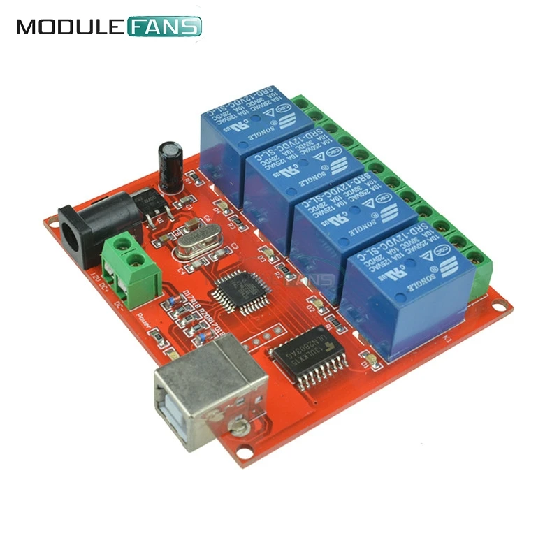 DC 12V USB Relay 4CH 4 WAY Channel Programmable Computer Control ...