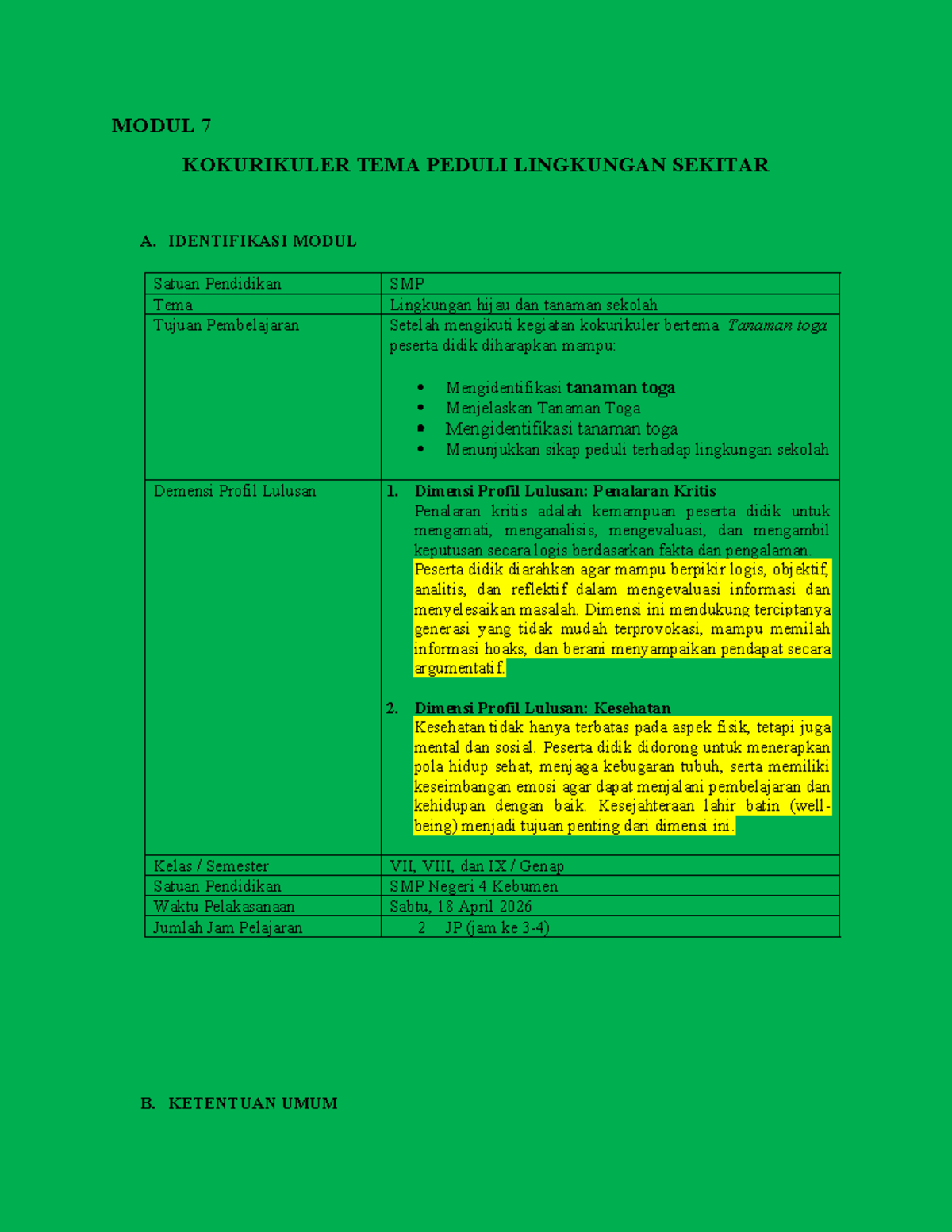 Modul 7 Kokurikuler: Tema Peduli Lingkungan dan Tanaman Toga - Studocu