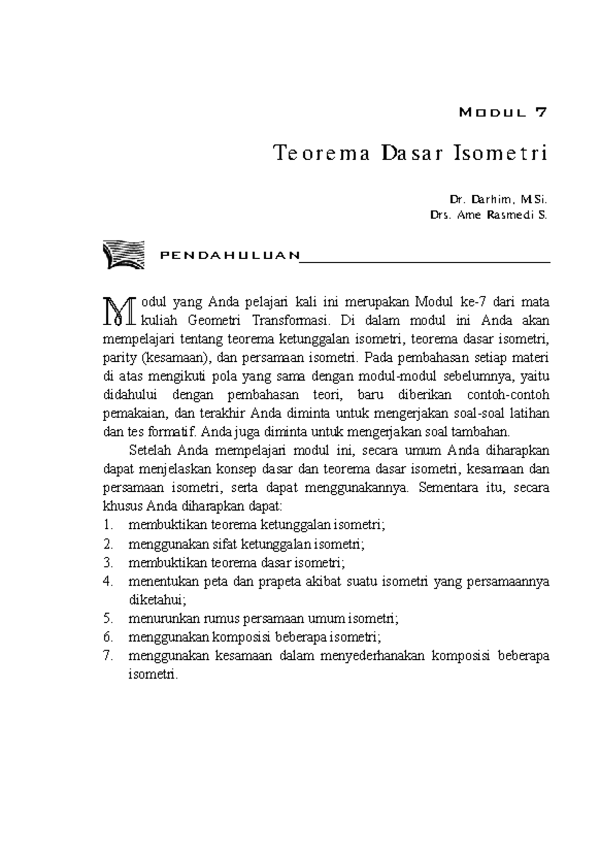 Modul 7: Teorema Dasar Isometri dalam Geometri Transformasi - Studocu