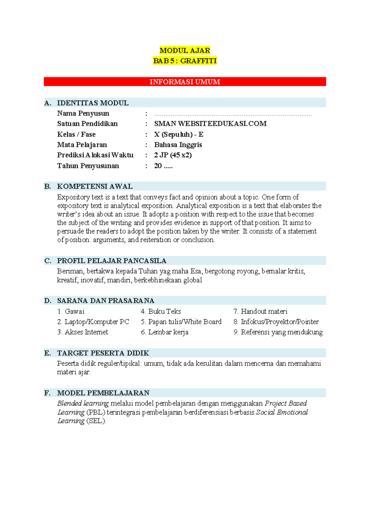 BAB 5: GRAFFITI - MODUL AJAR BAHASA INGGRIS KELAS X - Studocu