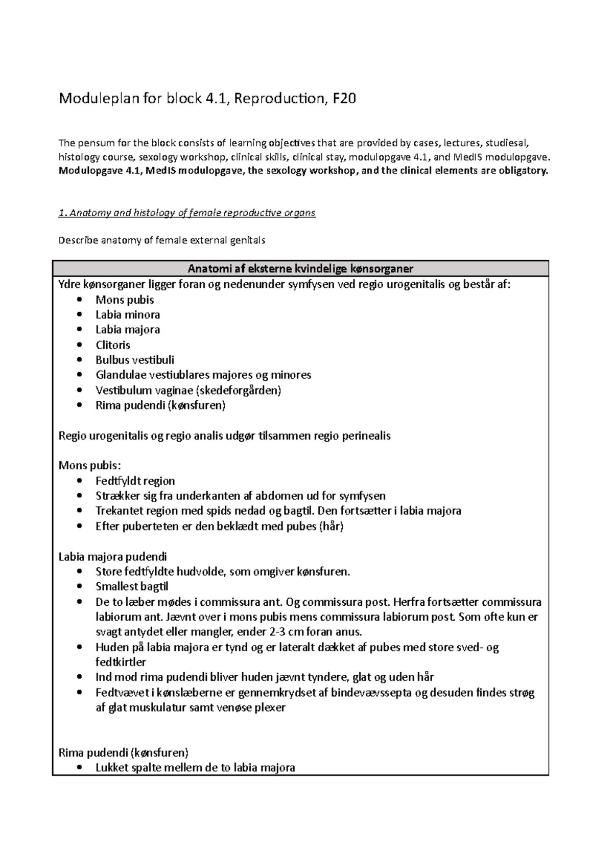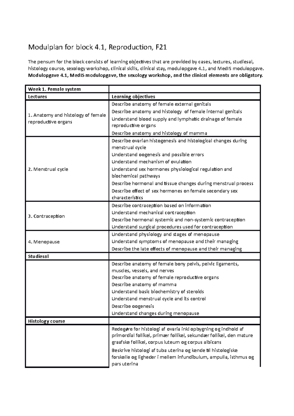 4.1 modul plan i word format - Modulplan for block 4, Reproduction, F ...