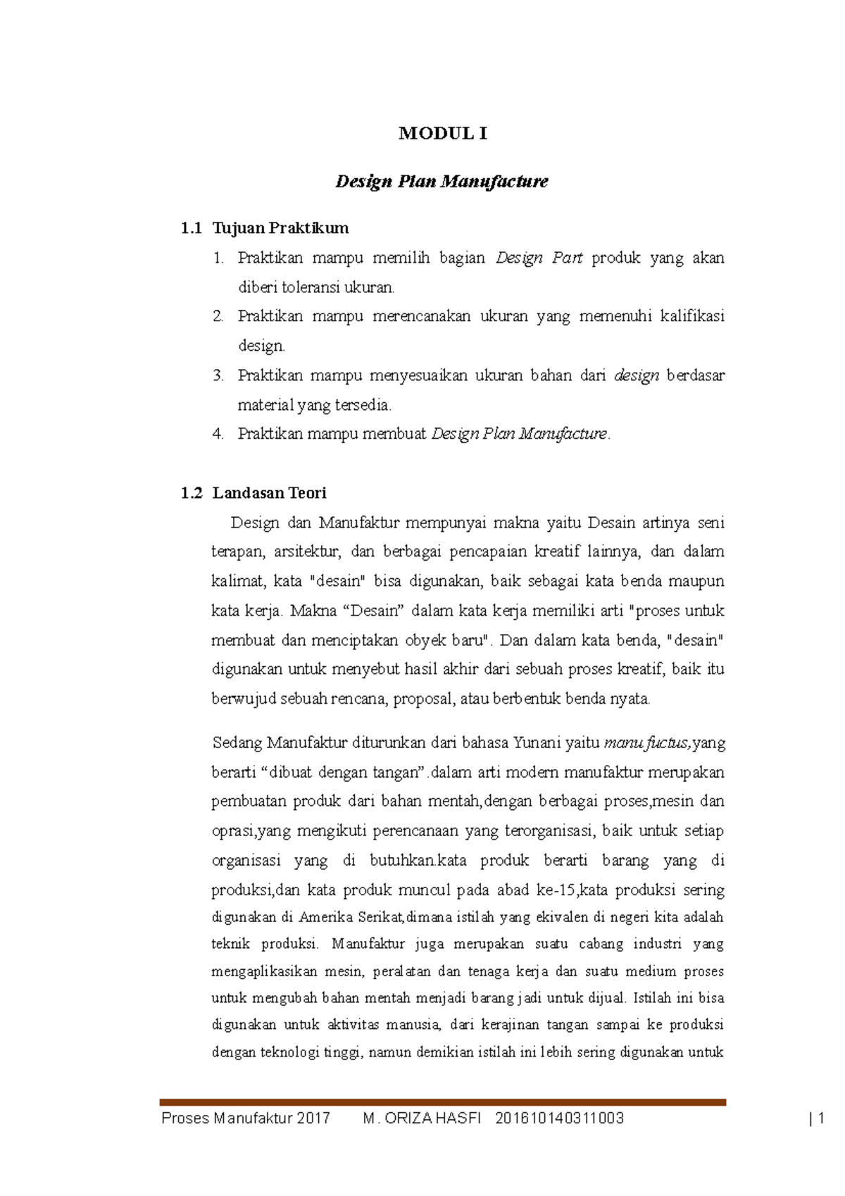 Modul 1 Design Plan Manufacture - MODUL I Design Plan Manufacture 1 ...