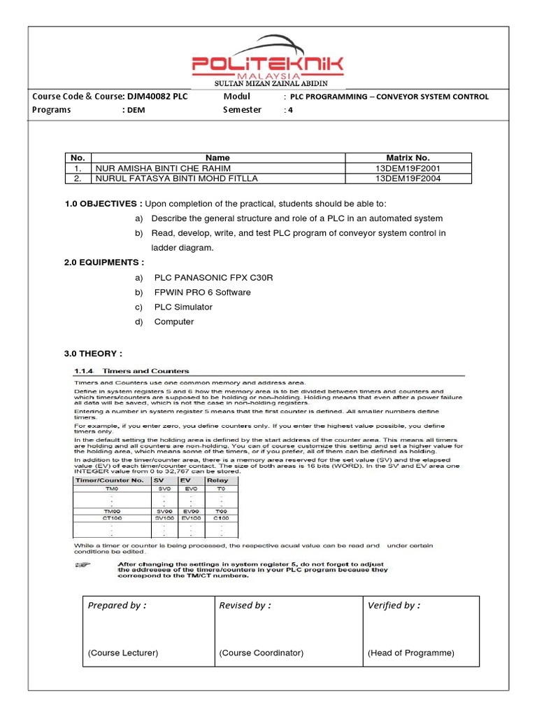 Semester: Course Code & Course: DJM40082 PLC Modul Programs | PDF ...