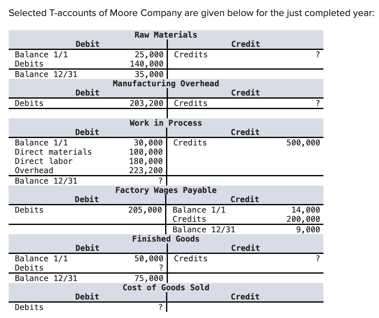 Solved Selected T-accounts of Moore Combanv are aiven below | Chegg.com