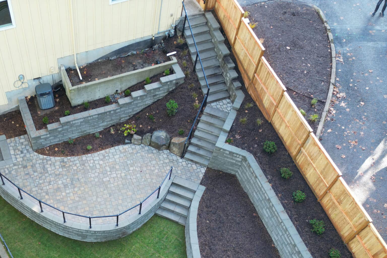 With A Landing With Steps Retaining Walls