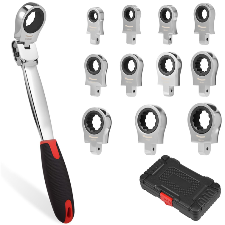 NCANRUI Flex Head Ratcheting Wrench Set, 8-19mm Metric Ratchet Wrench ...