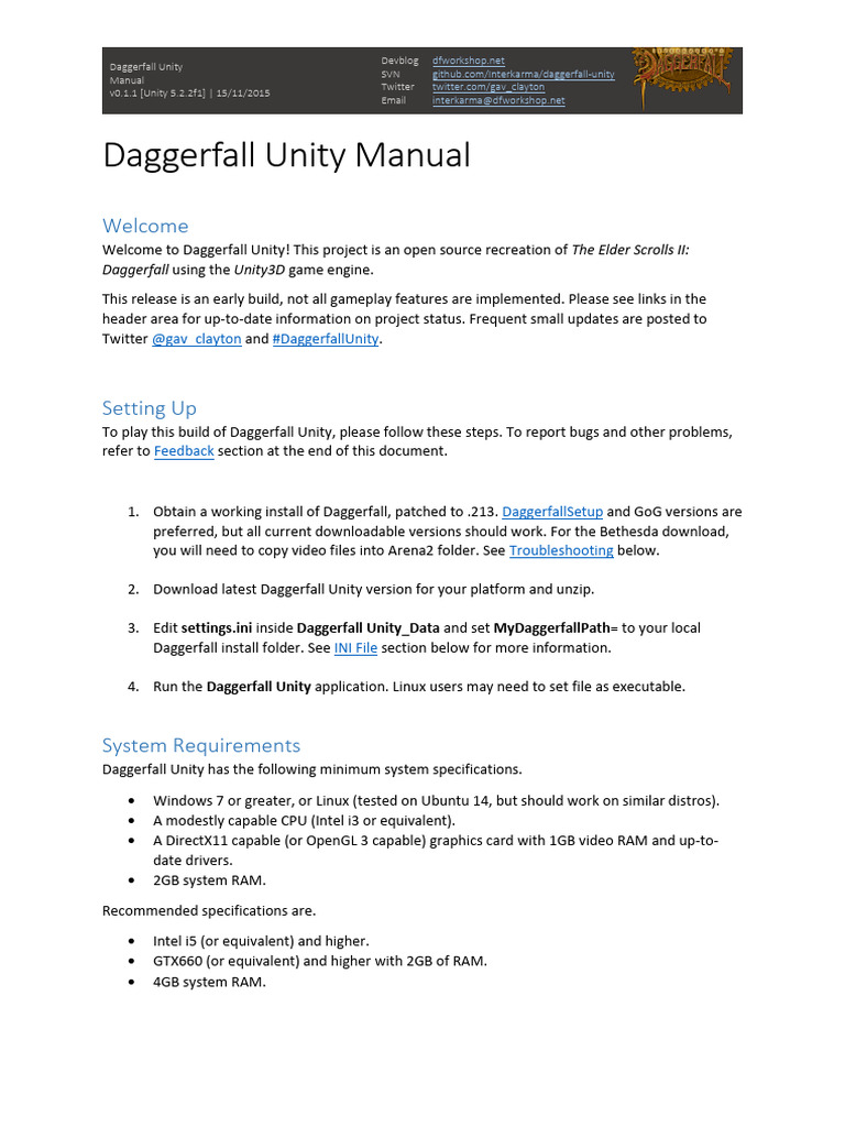 Daggerfall Unity 0.1.1 Manual | PDF | Unity (Game Engine) | Texture Mapping