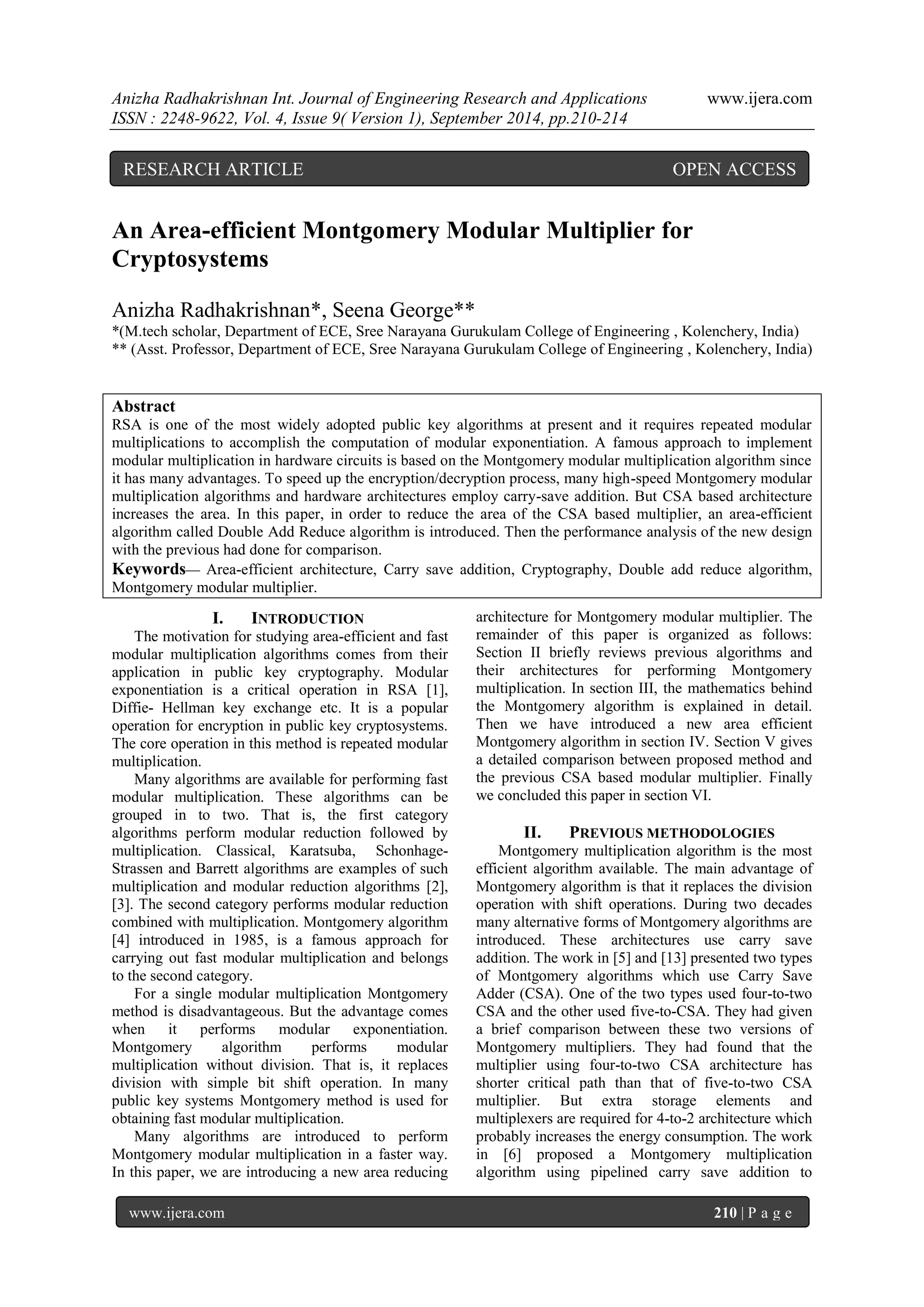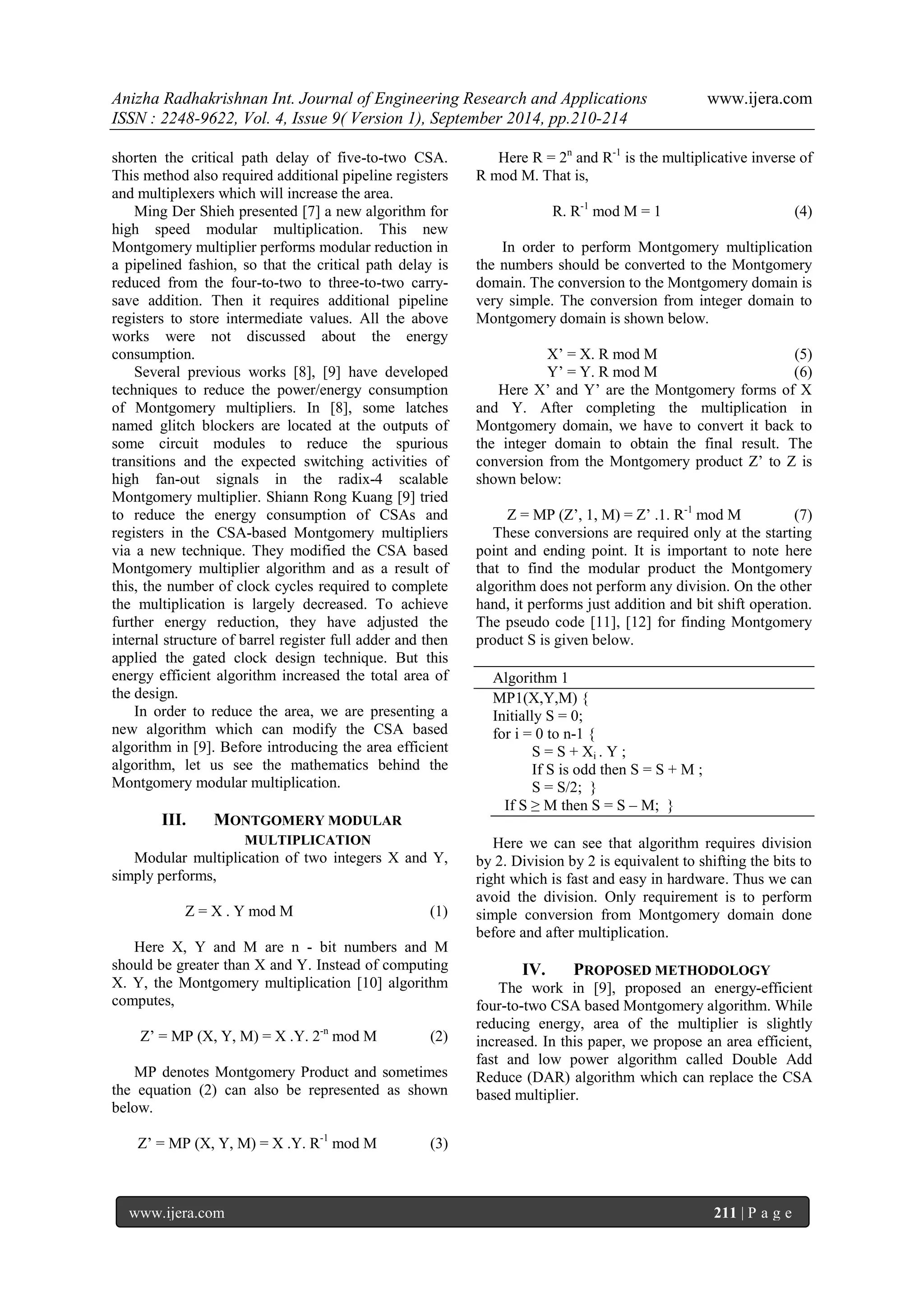 An Area-efficient Montgomery Modular Multiplier for Cryptosystems | PDF ...