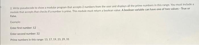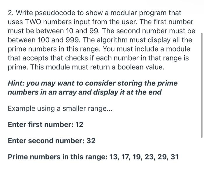 Solved 2. Write pseudocode to show a modular program that | Chegg.com
