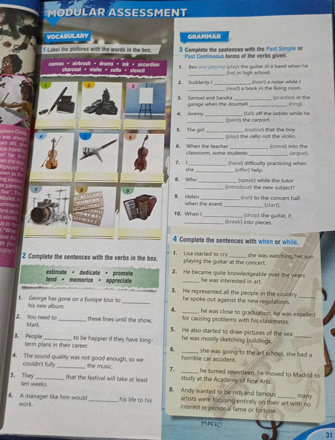Resuelto:MODULAR ASSESSMENT VOCABULARY GRAMMAR 1 Label the pictures ...