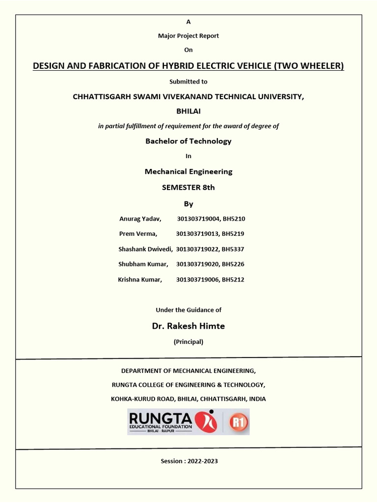 Hybrid Electric Two-Wheeler Project Report | PDF