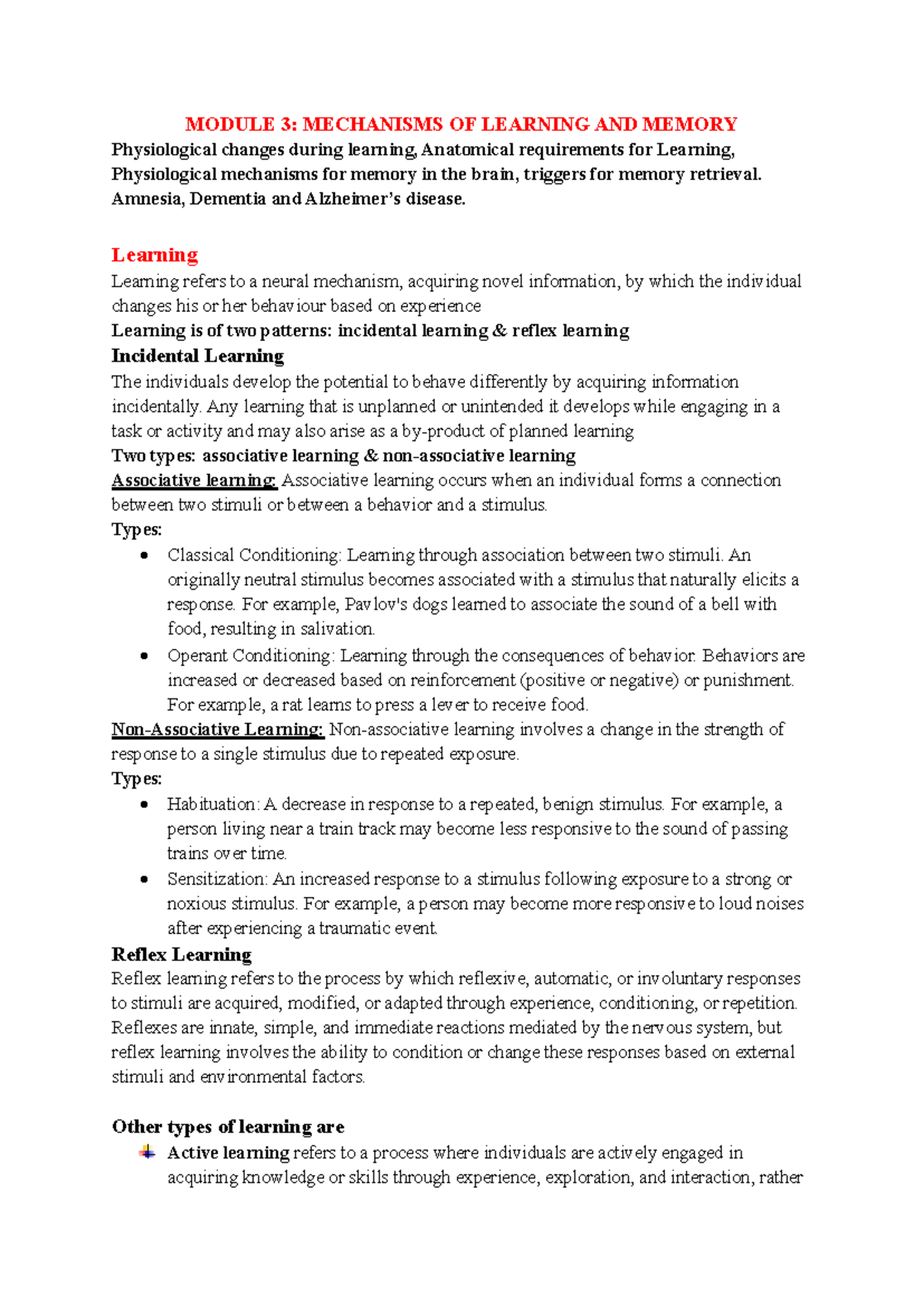 Module 3: Mechanisms of Learning & Memory - Key Concepts and Processes ...