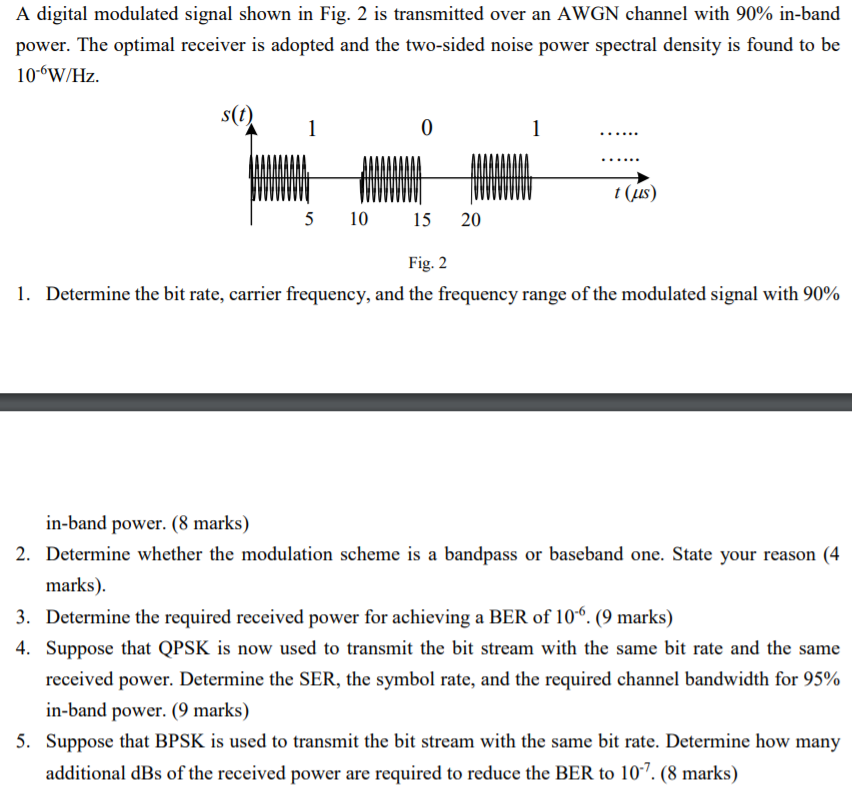 A digital modulated signal shown in Fig. 2 is | Chegg.com