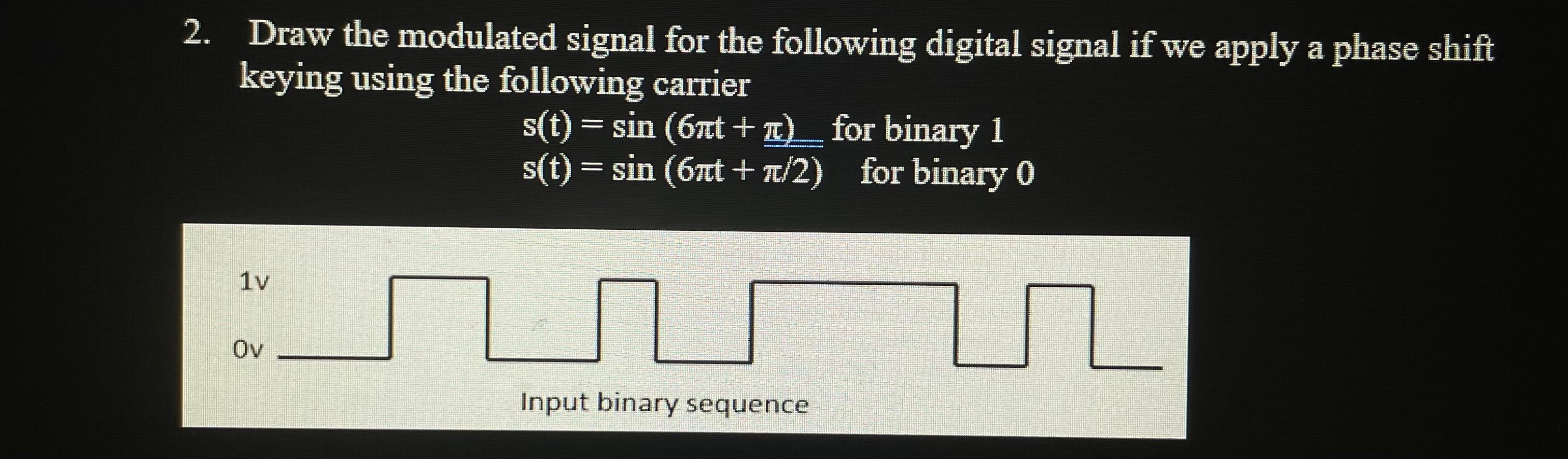 Solved Draw the modulated signal for the following digital | Chegg.com