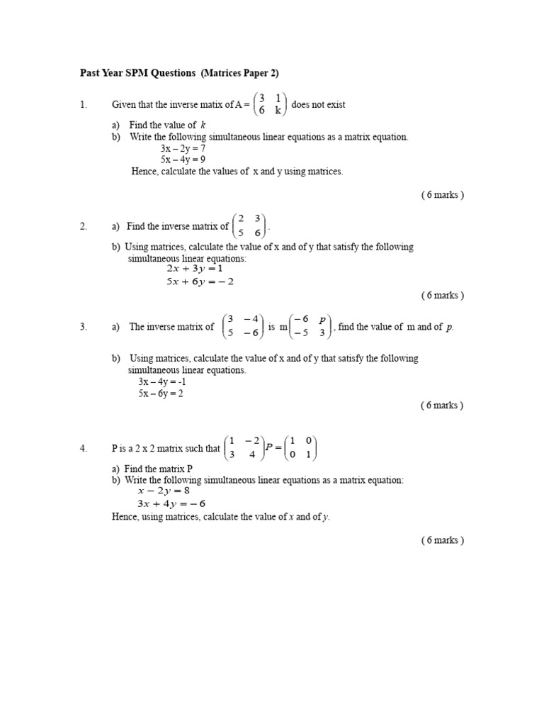 Matrices - PART 1 Form 5 | PDF | Matrix (Mathematics) | Mathematical ...