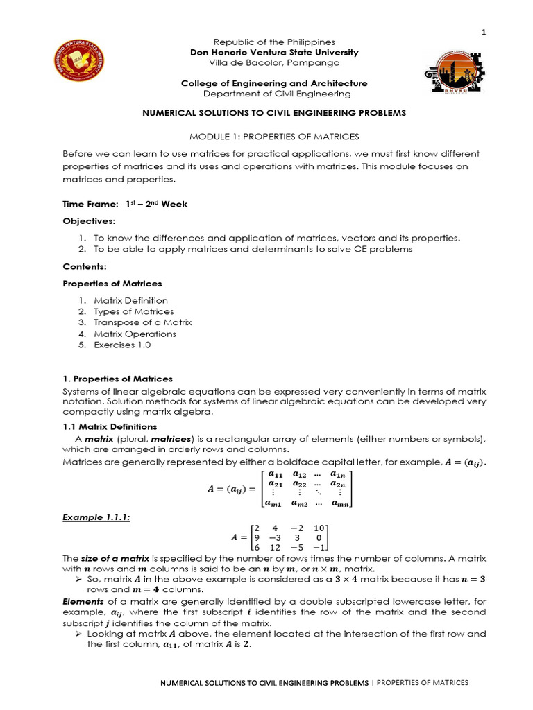 Module 1- Basic Concepts OF Matrices - NUEVA VIZCAYA STATE UNIVERSITY ...