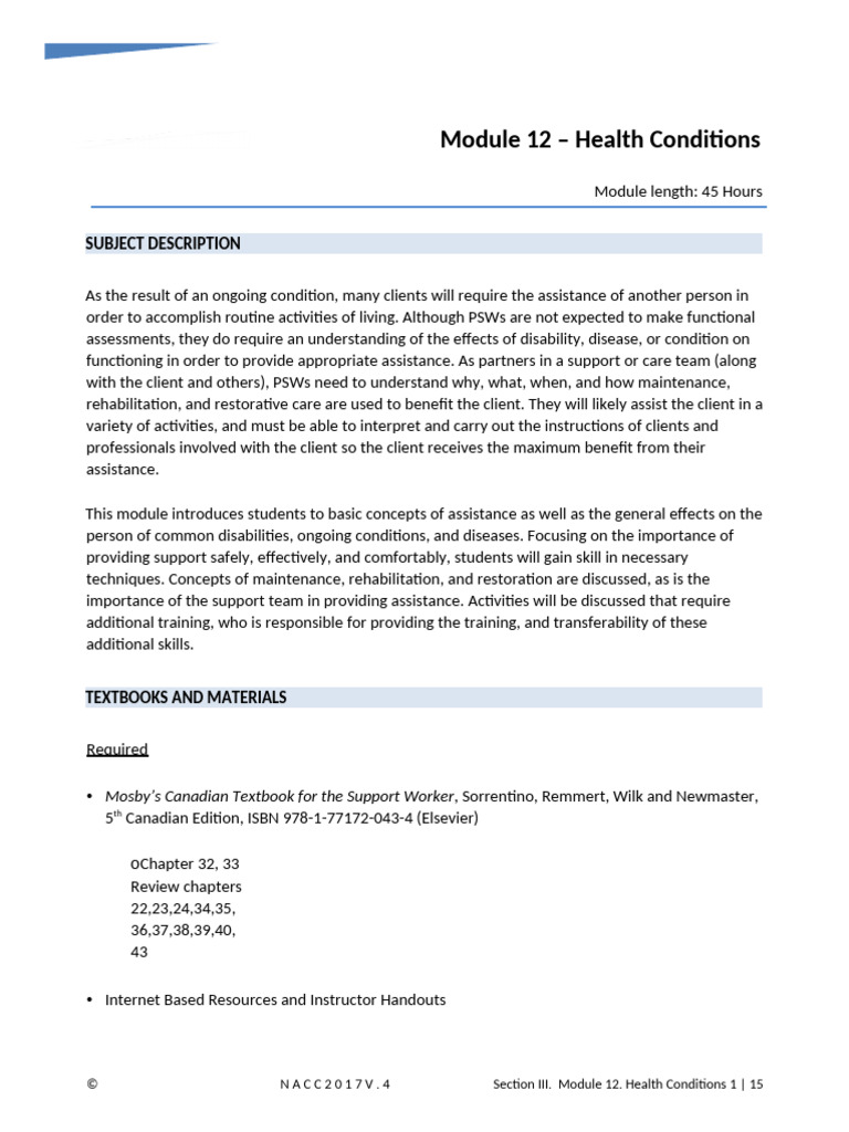 Module 12 Health Conditions Test - PSW1 - Studocu