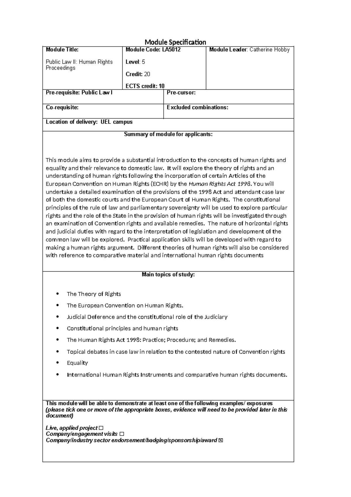 LA5012 - Public Law II - New Module Spec - Module Specification Module ...