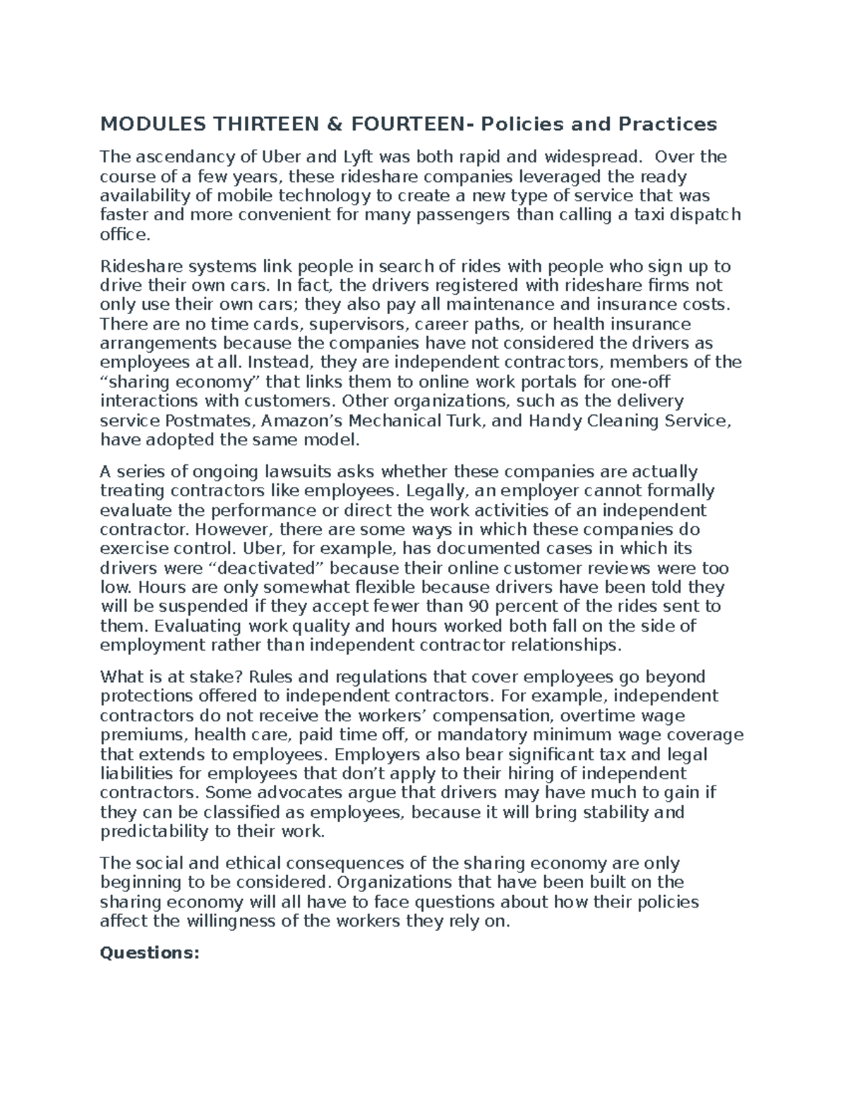 Module Thirteen and Fourteen Writing - MODULES THIRTEEN & FOURTEEN ...