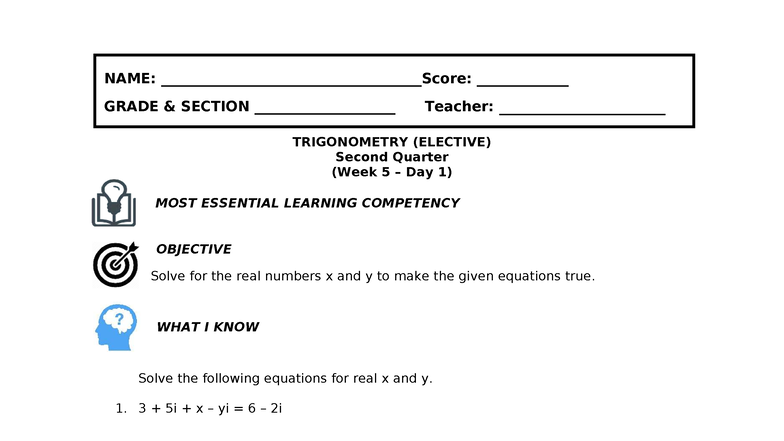 Week 5 Q2 Module and Worksheets 1 - TRIGONOMETRY (ELECTIVE) Second ...
