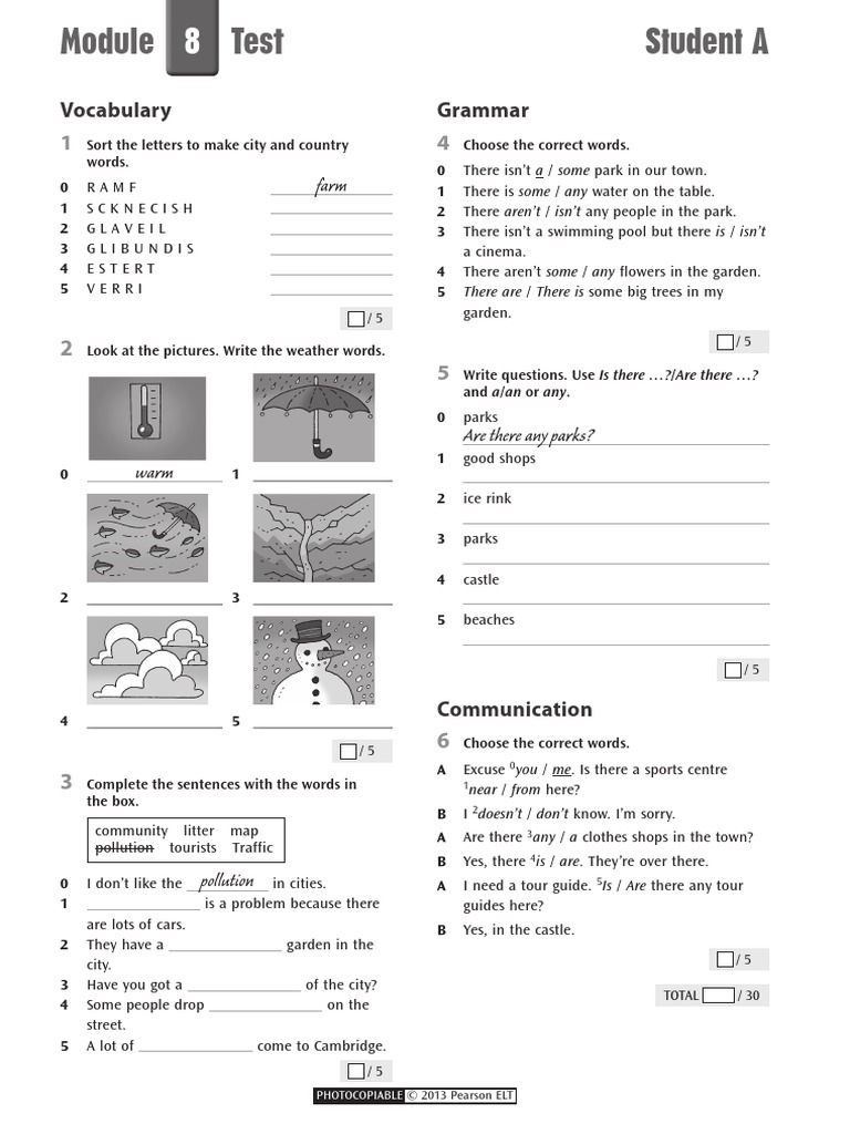 Module 8 Test Student A: 1 Complete The Words. 0 1 2 3 4 5 6 7 8 9 10 ...