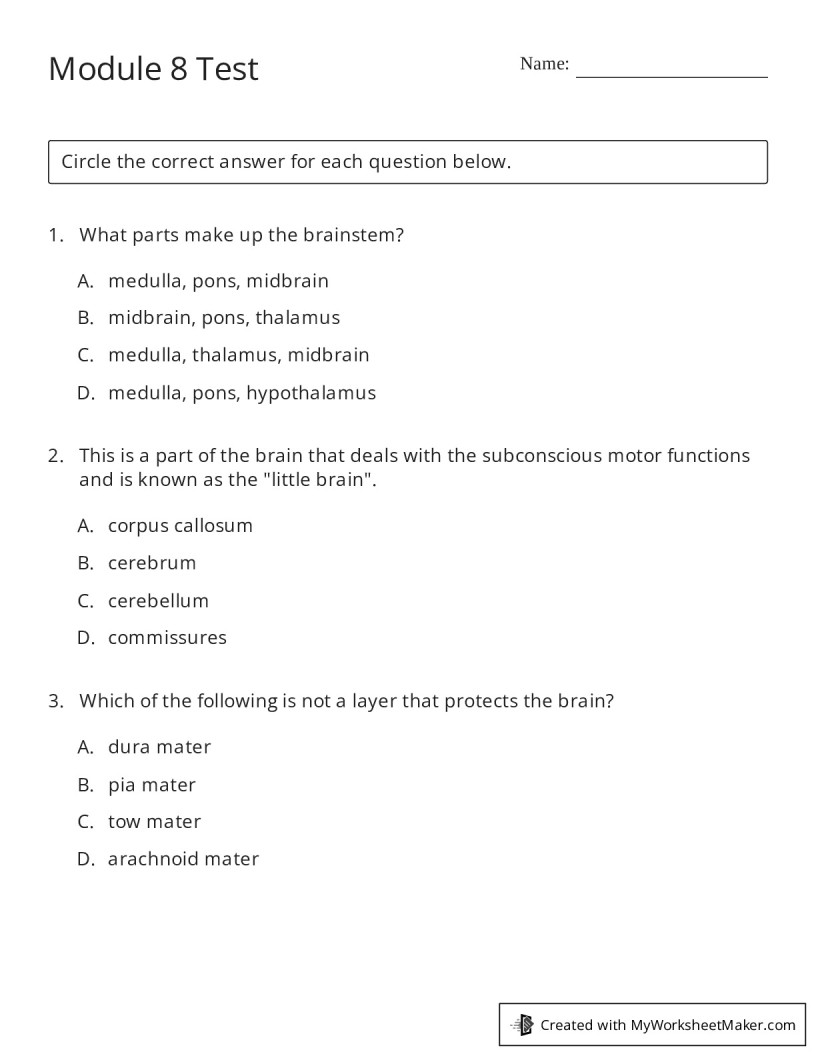 Module 8 Test - My Worksheet Maker: Create Your Own Worksheets