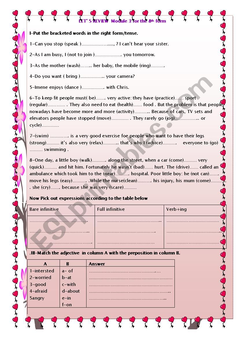 Review Module3 for the 8th Forms Tunisian Students - ESL worksheet by ...