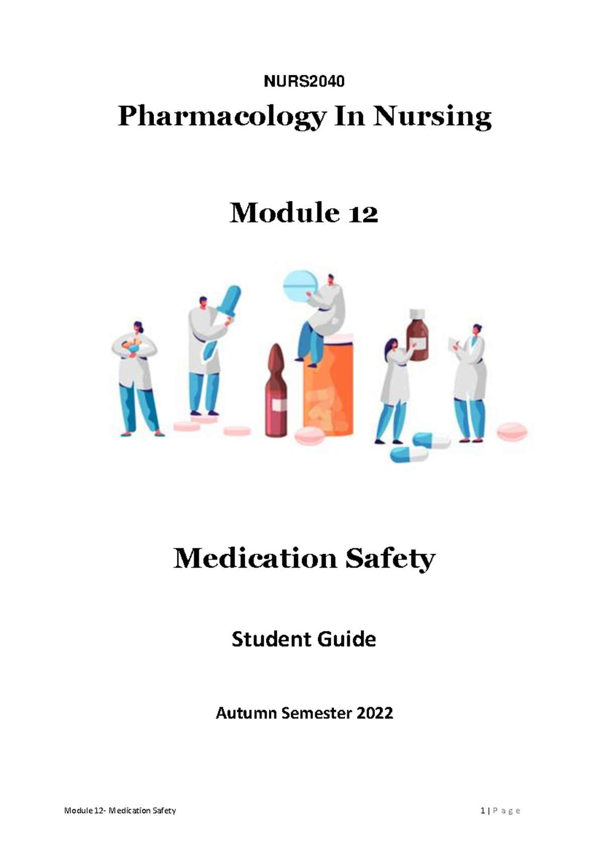 Student guide Module 12 Medication Safety - NURS Pharmacology In ...