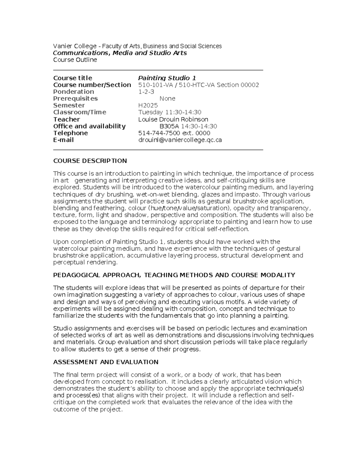 Painting Studio 1 Course Outline - H2025 - Studocu
