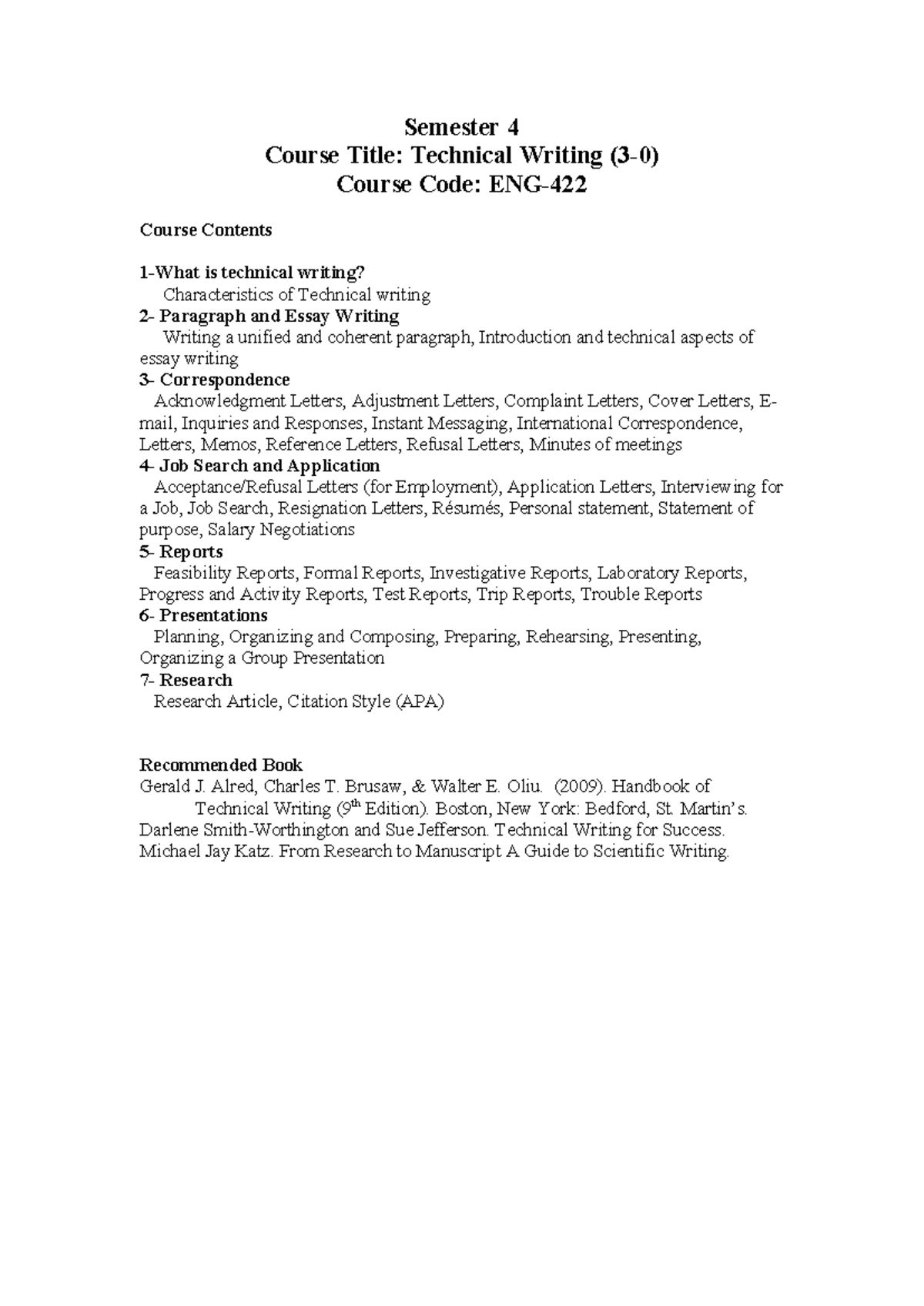 Technical Writing Course Module - Semester 4 Overview - Studocu