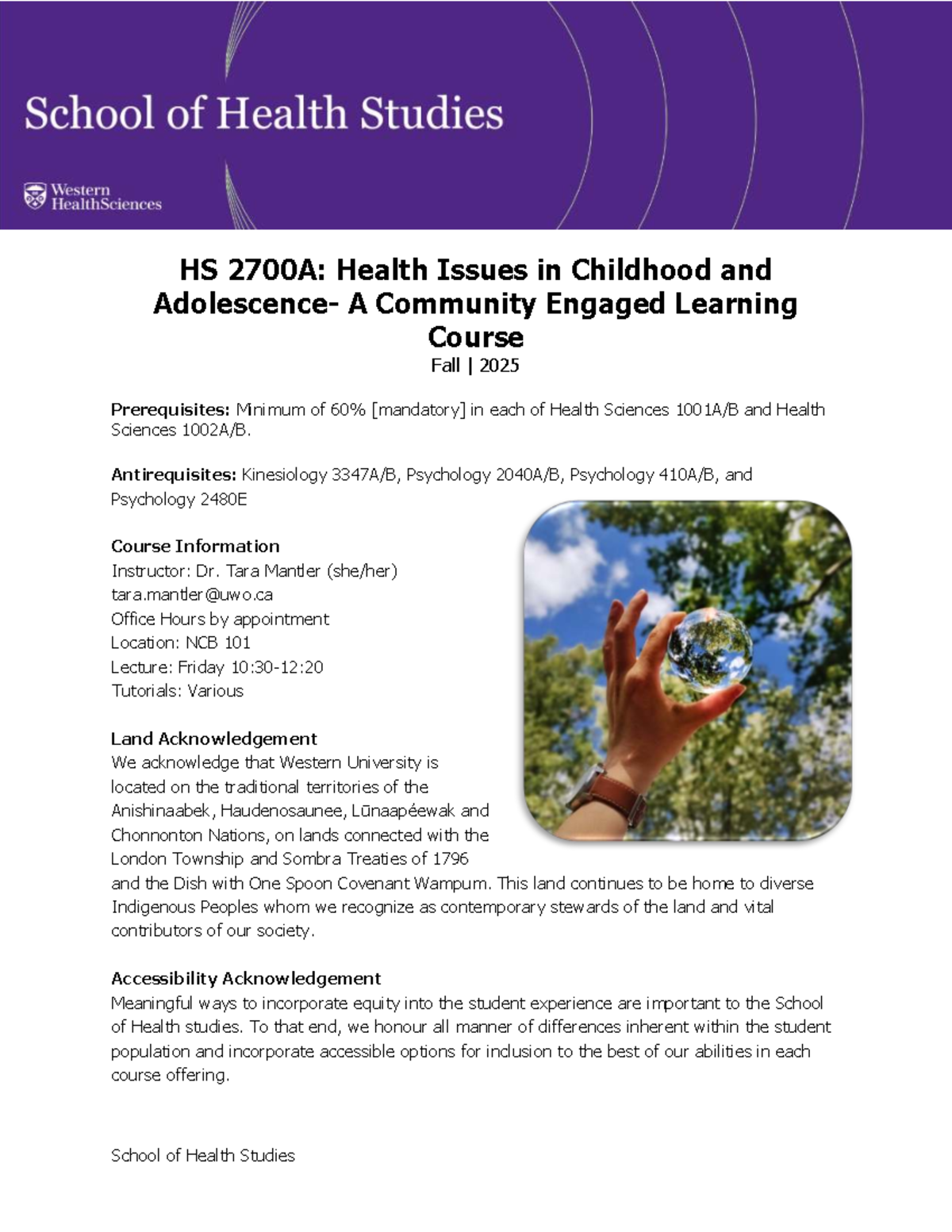 HS 2700A: Course Outline for Health Issues in Childhood - Fall 2025 ...