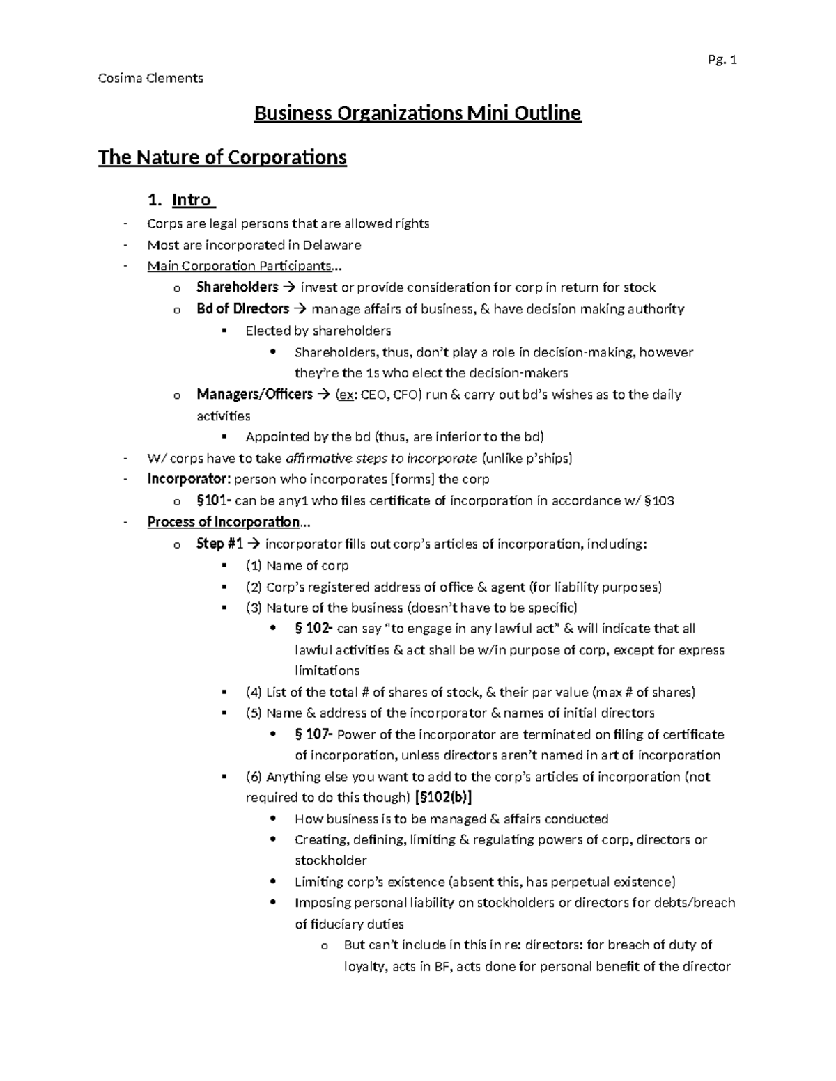 Business Organizations (Course Code: TBD) Mini Outline: Nature of ...