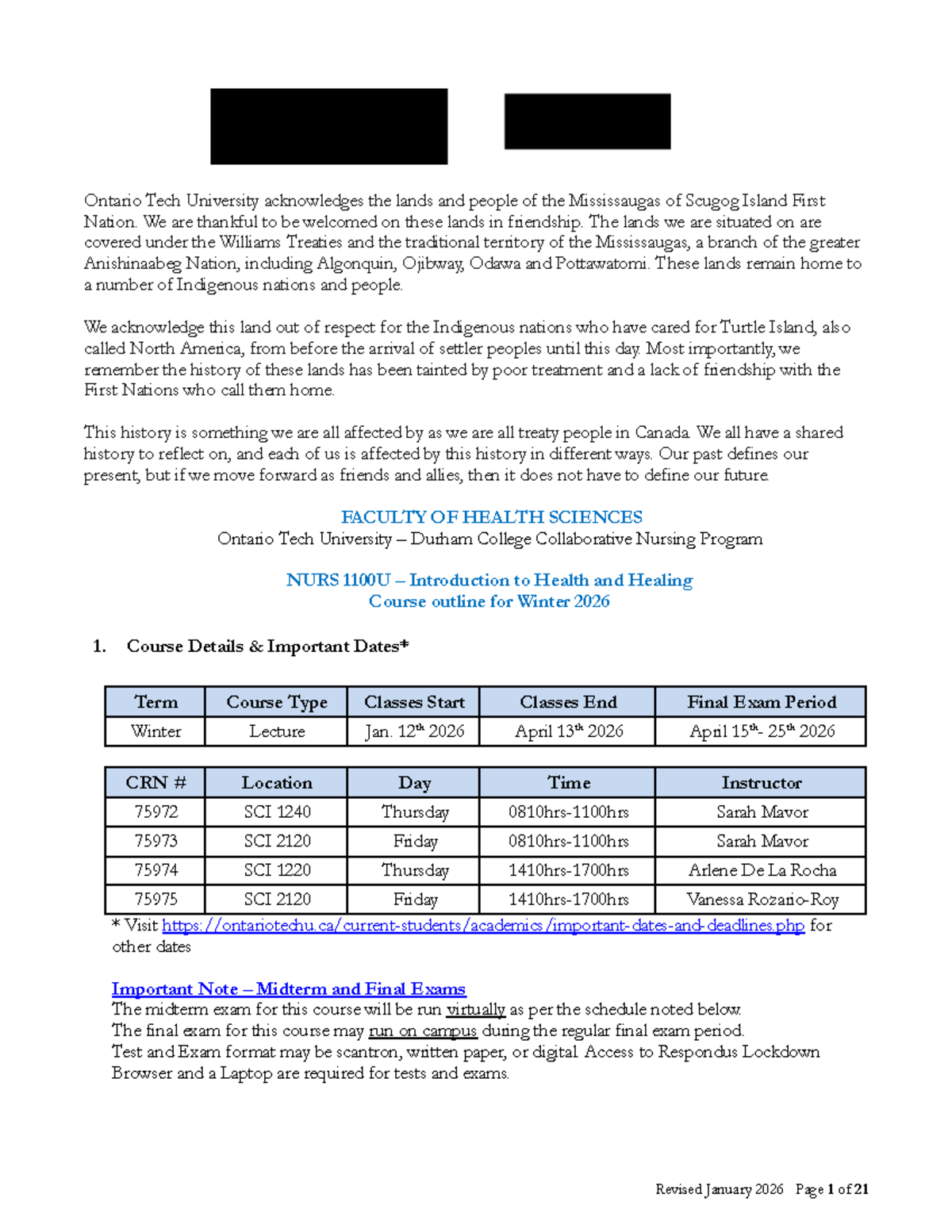 NURS 1100U Course Outline: Introduction to Health & Healing - Winter ...