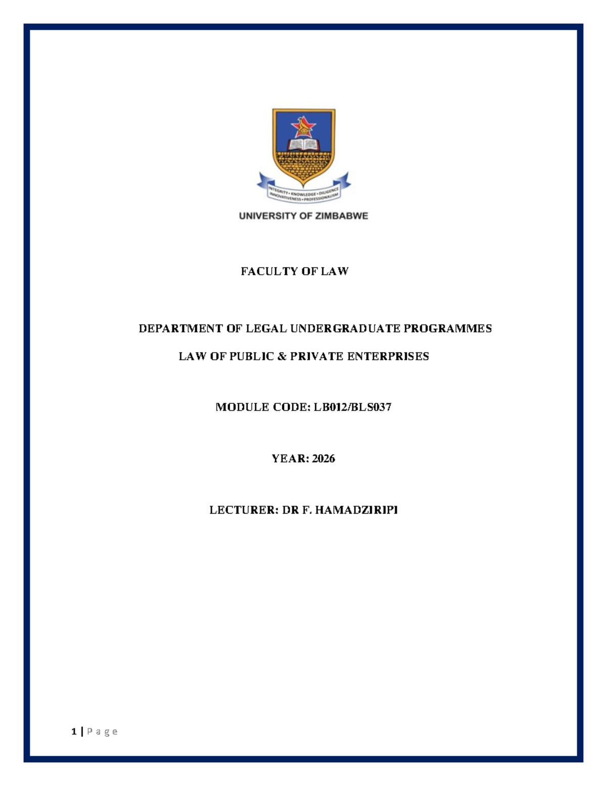 UZ LLB Company Law Course Outline 2026: Module Overview and Assessment ...