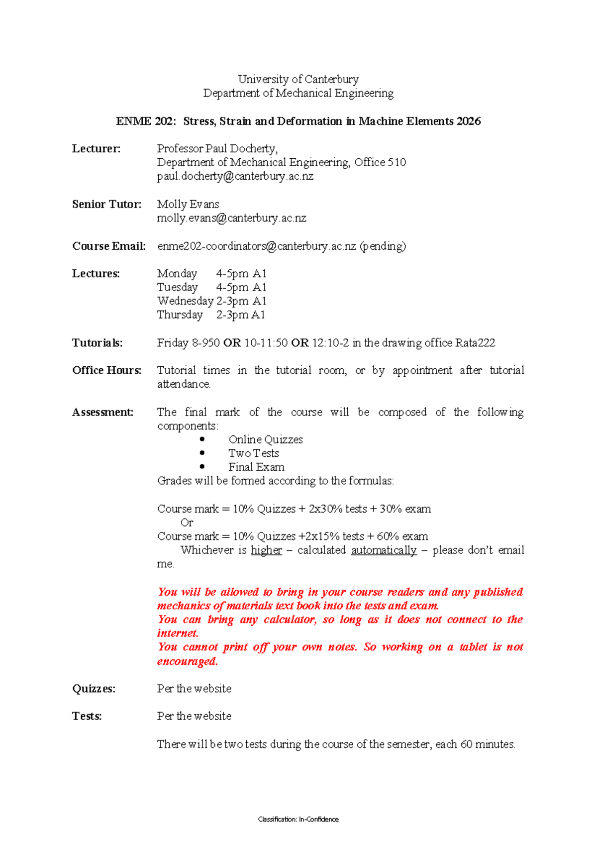 ENME 202: Course Outline for Stress, Strain & Deformation 2026 - Studocu