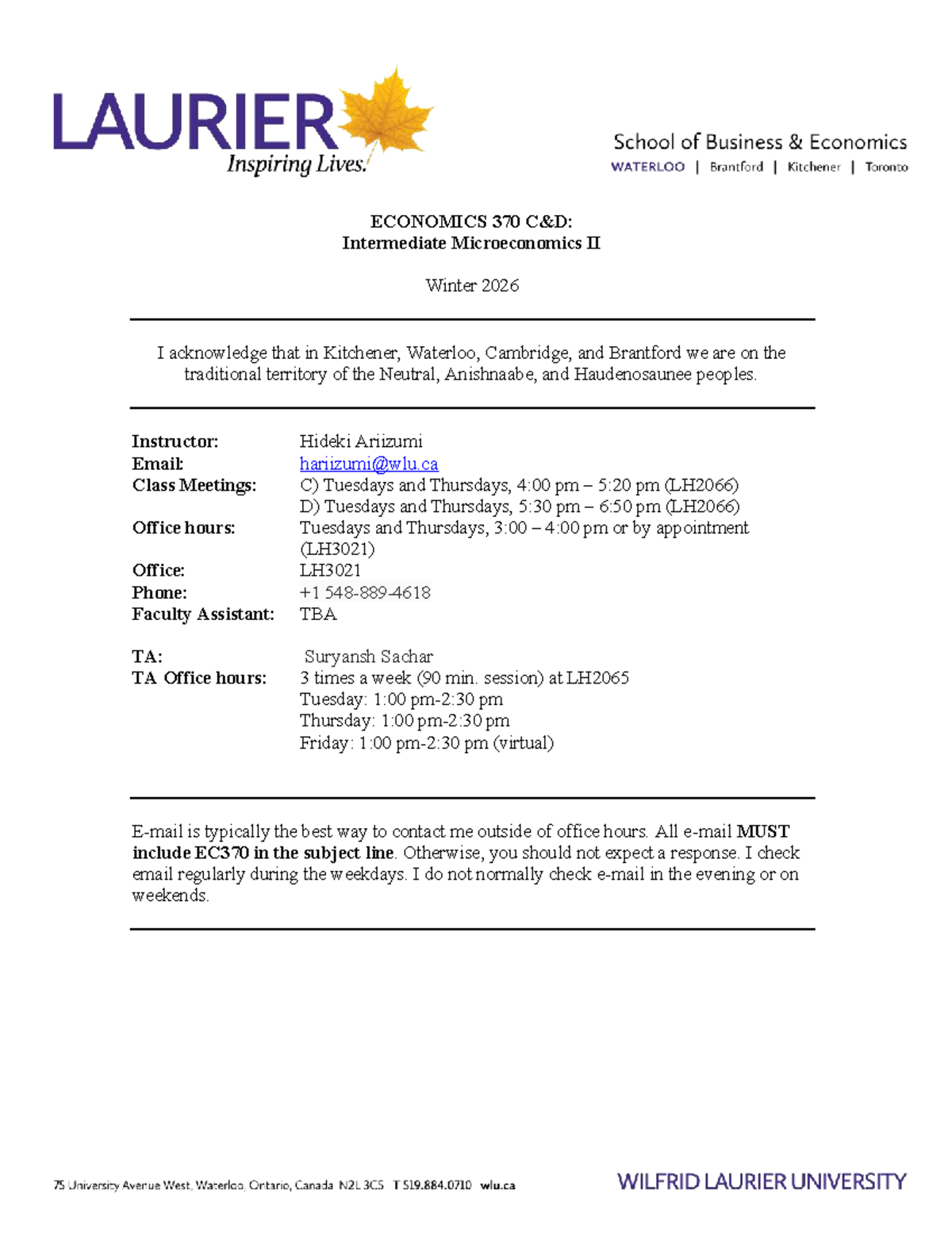 EC370 Intermediate Microeconomics II Course Outline Winter 2026 - Studocu