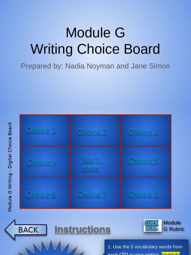 Module G Writing Choice Board Guide | PDF