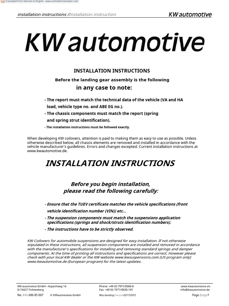 370z KW v1 Install - De.en | PDF | Engineering Tolerance | Screw