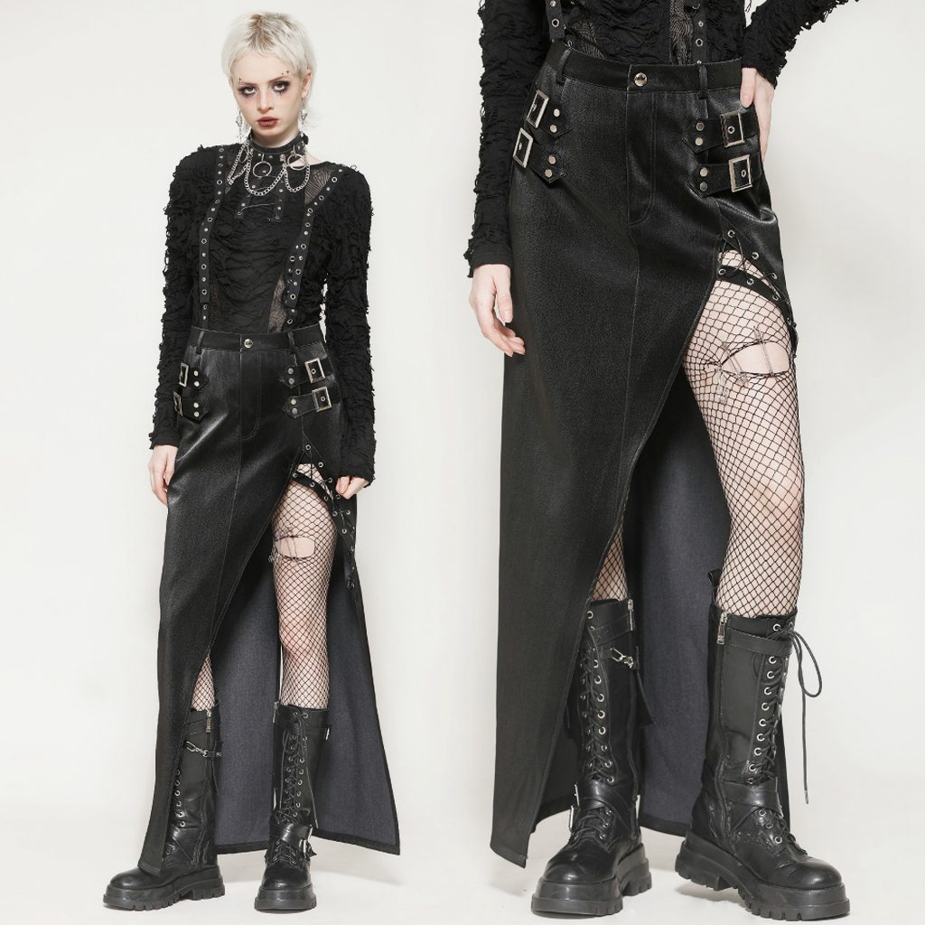 KW370 – Maxi pleather high slit skirt – Western F.a.s.h.i.o.n