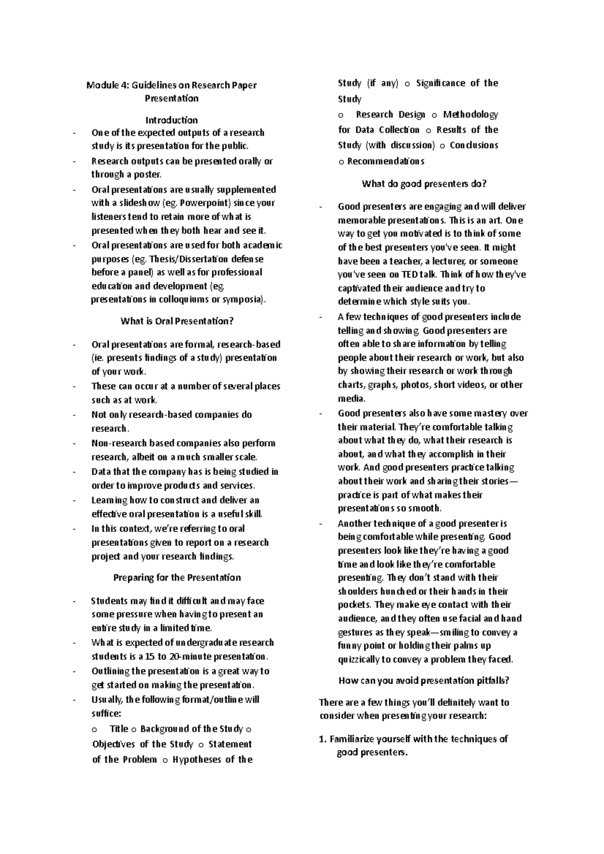 Module Paper Guidelines: How to Summarize and Relate Articles to ...