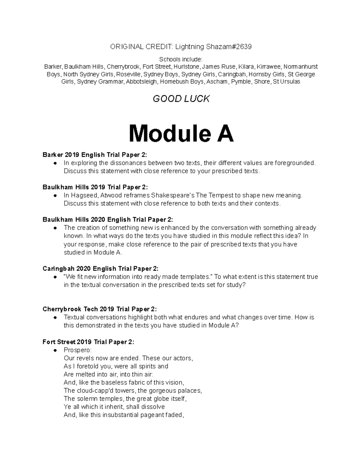 Practice Questions for all Modules - Module A Barker 2019 English Trial ...
